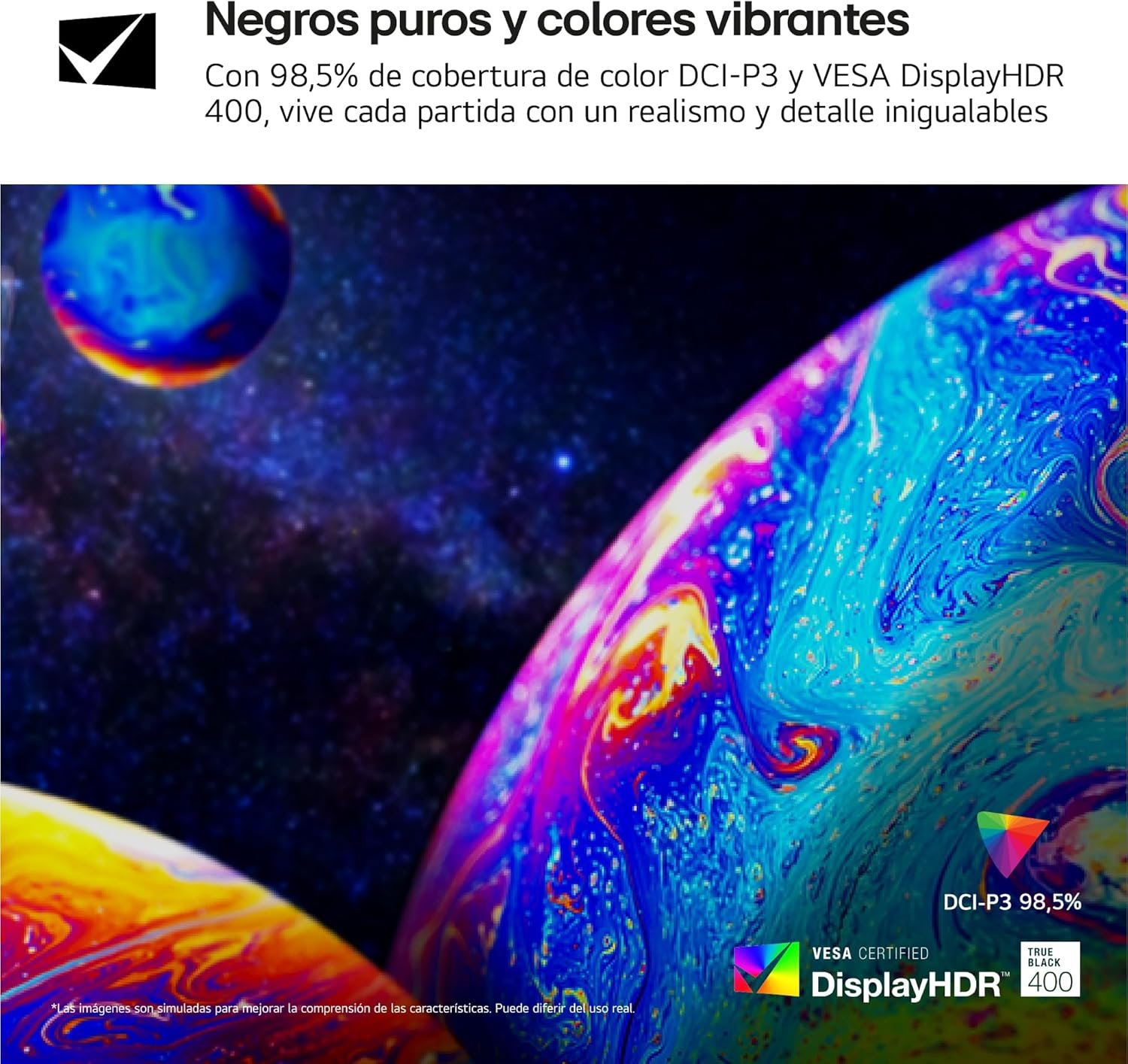 Vibrant colors and deep blacks: DCI-P3 98.5% coverage and DisplayHDR True Black 400 deliver lifelike images with stunning contrast.