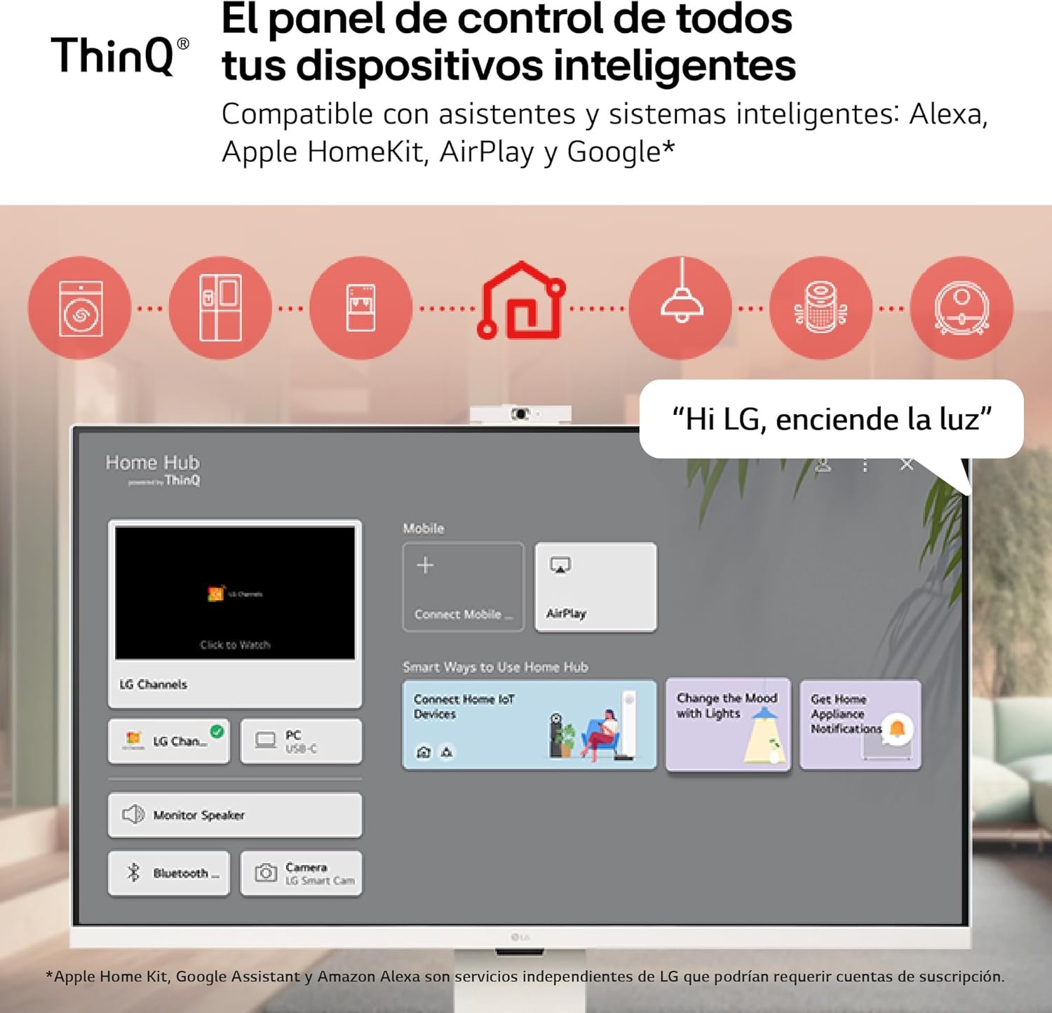 Smart Home Compatibility – Control smart devices from the monitor with ThinQ and Alexa, compatible with Apple HomeKit, AirPlay 2 and Google, making your daily life easier.