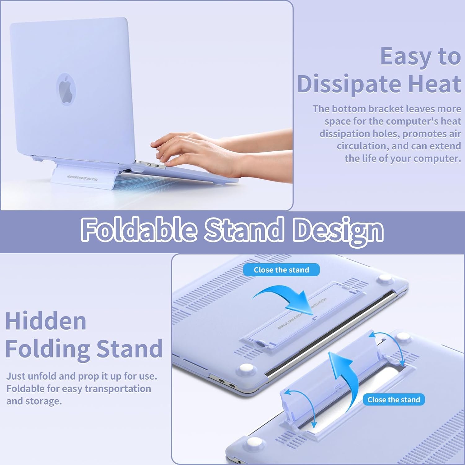 [Kickstand Design] This protective cover features a foldable stand at the bottom, which quickly converts into a stand. When not in use, it can be easily stored away to simplify your work. The bottom cover is equipped with air vents for good ventilation and heat dissipation.