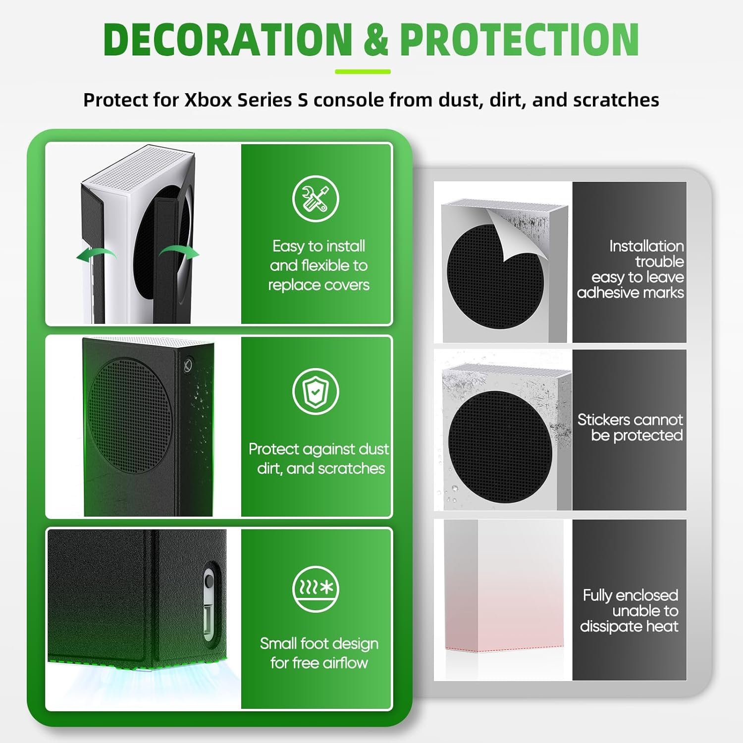 PACKAGING We aim to provide you with high-quality Xbox Series S accessories. You will get 1 Xbox Series S wrap, and the Xbox case is a great gift for your friend or family on the festival and birthday. If you have any questions, we provide worry-free 18-month warranty and friendly customer service.