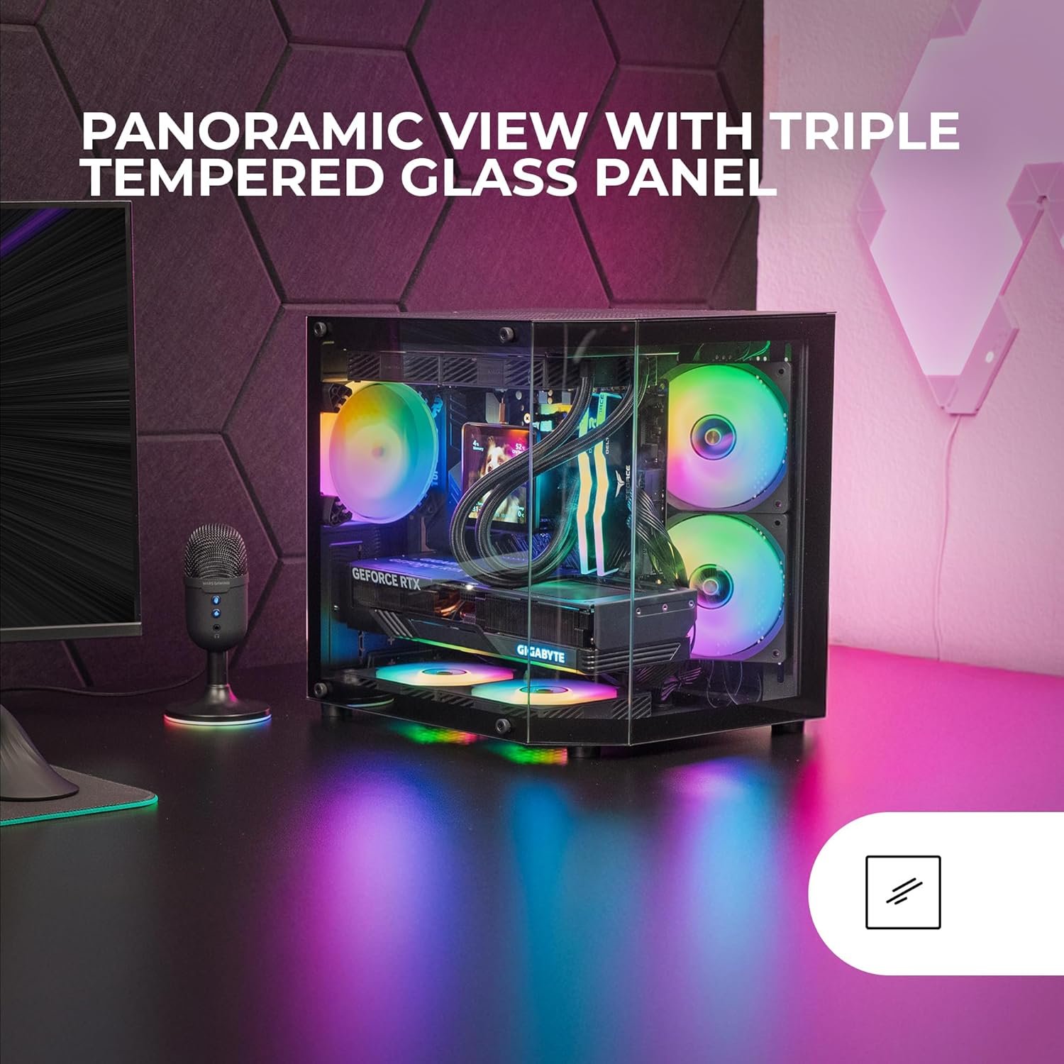 PANORAMIC DESIGN: The MC-3TLITE PC case, with a compact and tidy chassis, incorporates three tempered glass panels that offer a continuous and uninterrupted view of the interior, turning your setup into a real gaming display case