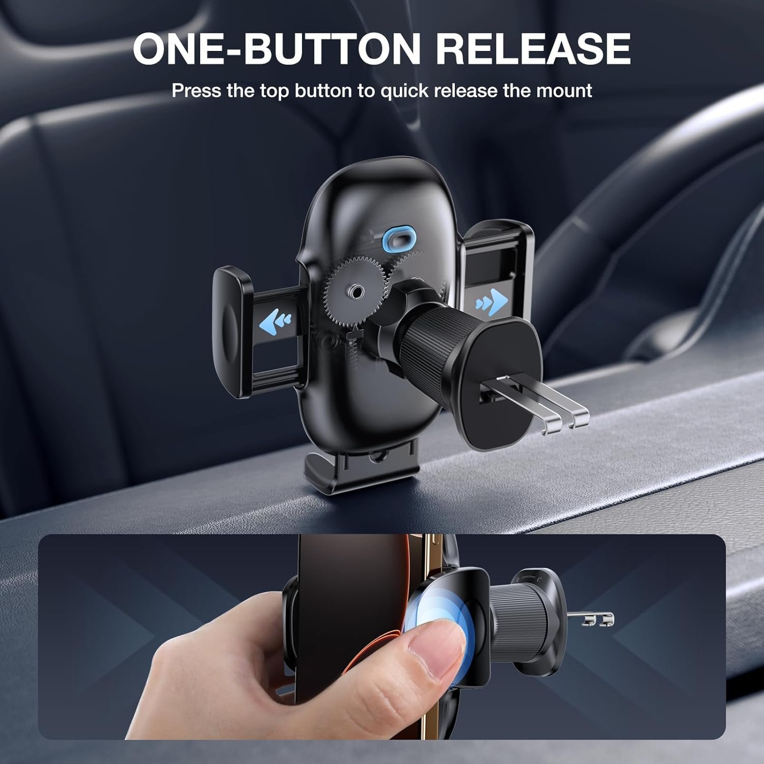 ONE-HAND OPERATION, EFFORTLESS CONVENIENCE – The innovative mechanical structure allows for true one-handed comfort. Simply place your phone in the car phone holder to lock it securely and press the back button for instant release. Whether you’re getting in or out of the car or need quick access while driving, your phone will always be within easy reach, fast and hassle-free