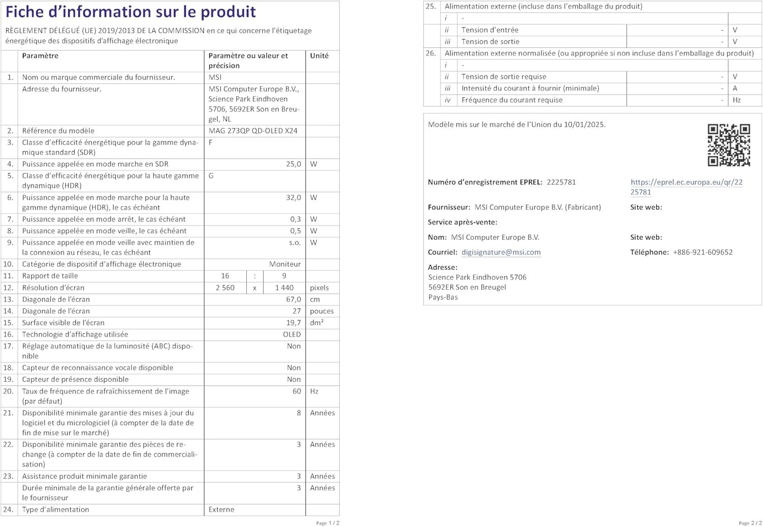 MSI mag 273QP QD-OLED X24 – Flat Gaming Monitor 26.5 Inch WQHD – OLED Panel Quantum Dot 2560 x 1440 240Hz / 0.03ms, 99% DCI-P3, Delta E≤2, DisplayHDR True Black 400, DP 1.4a, HDMI 2.1