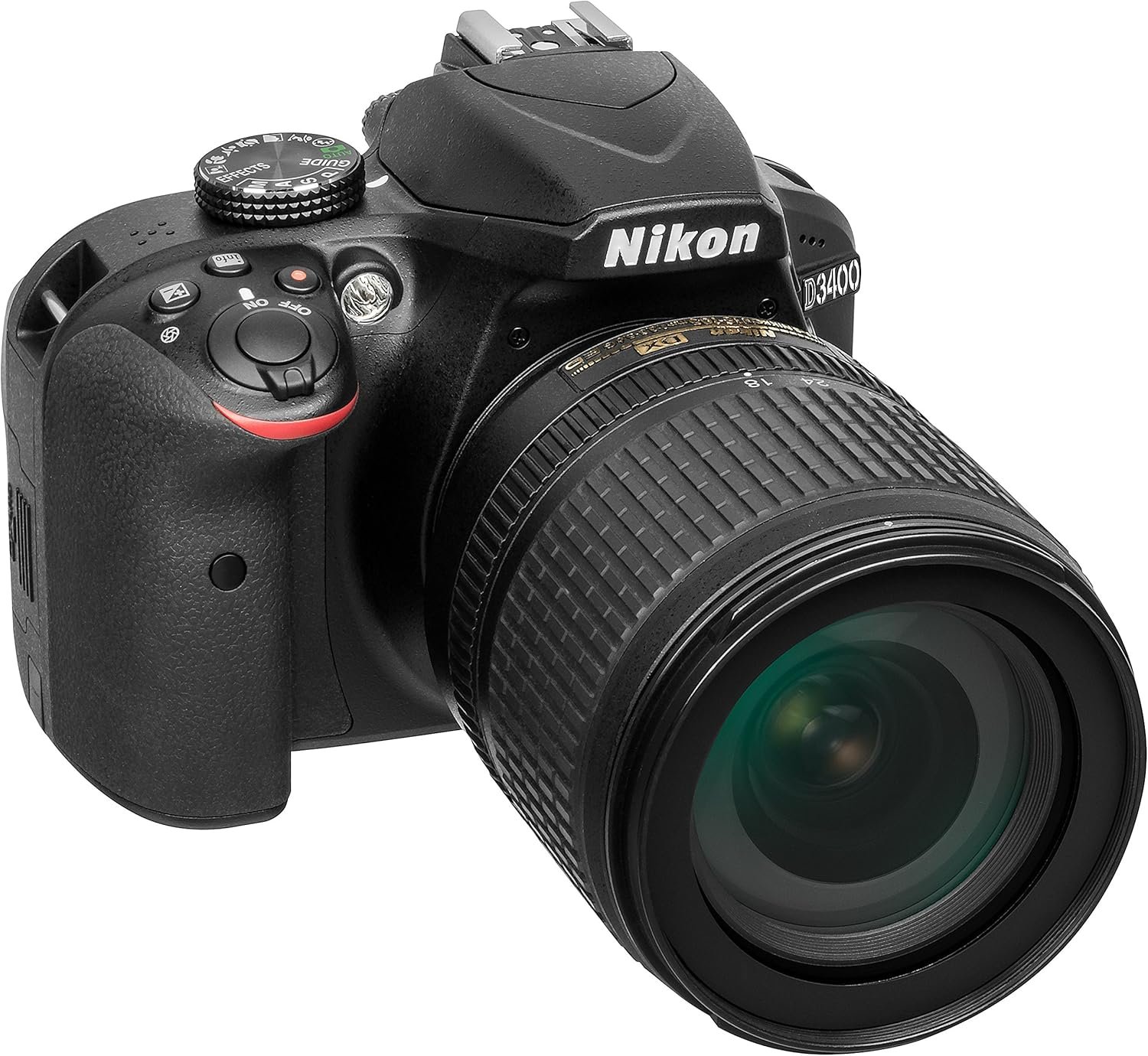 The D3400 makes it incredibly easy to shoot and share DSLR quality images. Nikon SnapBridge software lets you keep the camera connected to your smart device via Bluetooth, so you can sync photos as you shoot. Just choose your phone and the photos will appear there, ready to be shared: no hassle or waiting. And it’s not just any kind of photo. The large 24.2MP DX format sensor delivers incredible results in low light conditions and works in conjunction with the NIKKOR lens for an artistic background blur. Guide Mode lets you develop your photographic skills, while the high-capacity battery ensures that the D3400 is always powered.