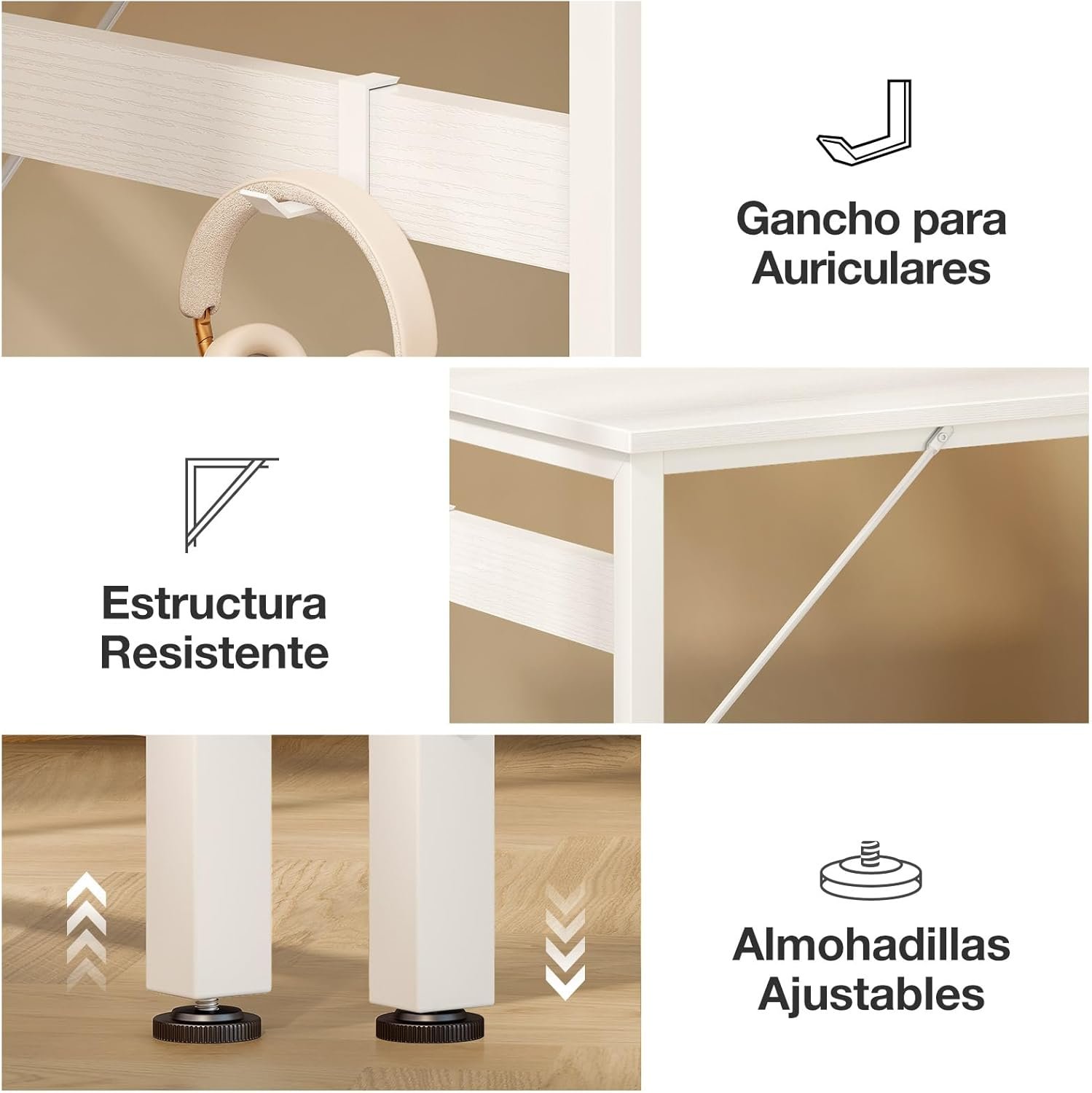 【Desk with Helmet Hook】 This desk is equipped with multifunctional hooks, convenient for hanging headphones, wallets and other gadgets to keep the space tidy. Spacious drawers provide ample storage space and easy access to daily necessities. Allow yourself to get on with your tasks in a comfortable and tidy environment.