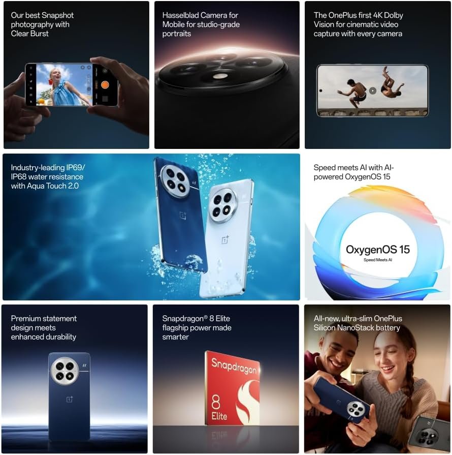 {Chipset} – The new Snapdragon 8 Elite mobile platform is the mind-driving heart of OnePlus’s artificial intelligence. With a faster neural engine, improved CPU and GPU, and a huge increase in memory bandwidth, your digital life, gaming and entertainment have never been faster or smoother.