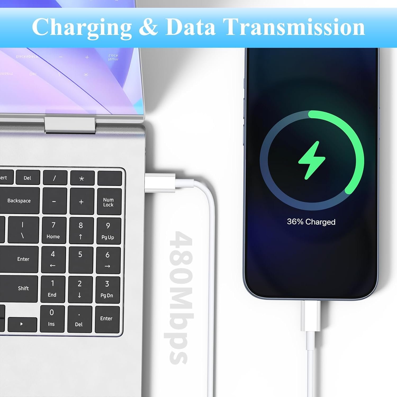 【Support Power Delivery】 Our cable is designed for fast charging as it charges most USB C devices to 50% in just 30 minutes. It allows a maximum charging speed of 60W, 20V, 3A and supports high-speed data sync at 480Mbps.