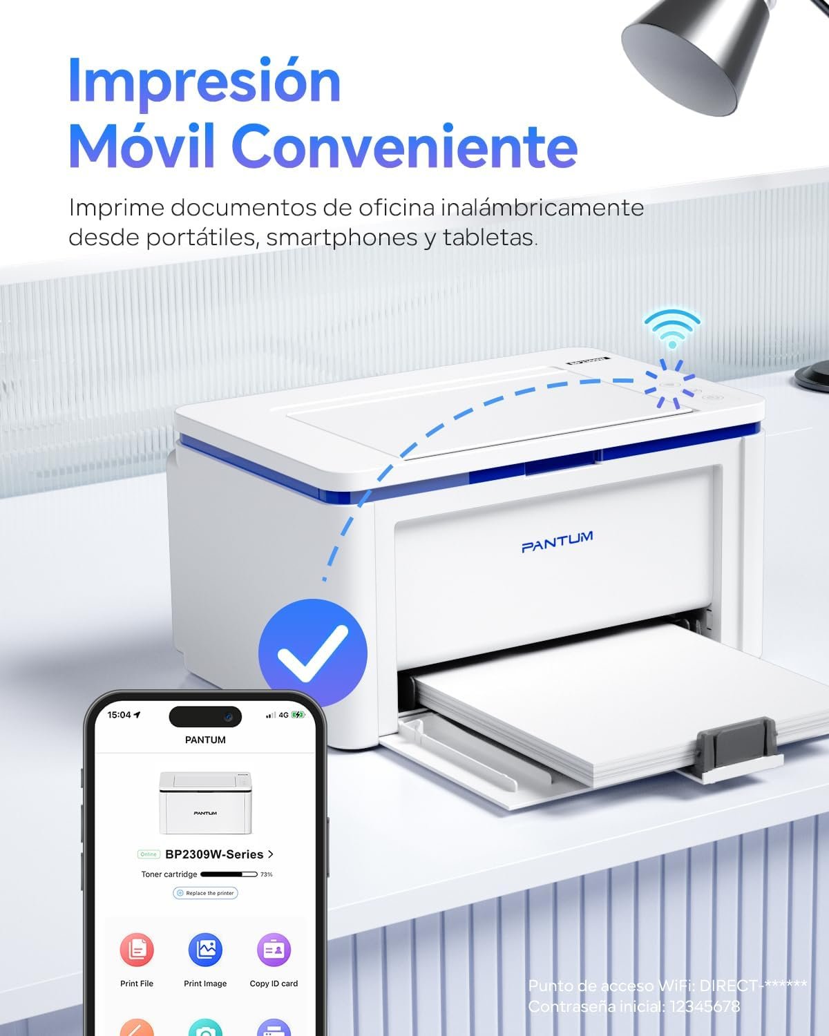 Wireless printing: print wirelessly from desktops, laptops, smartphones and tablets; connect to your device using WI-FI, Pantum APP, Bluetooth, AirPrint and Mopria to print documents directly. Note: WI-FI only supports 2.4G.