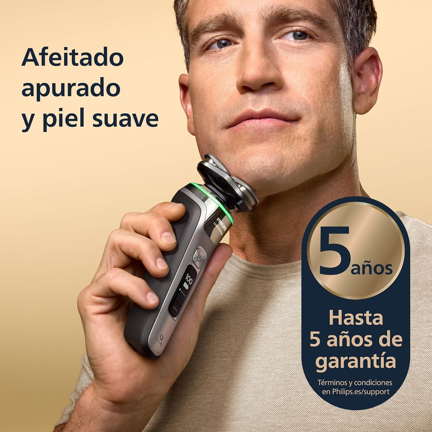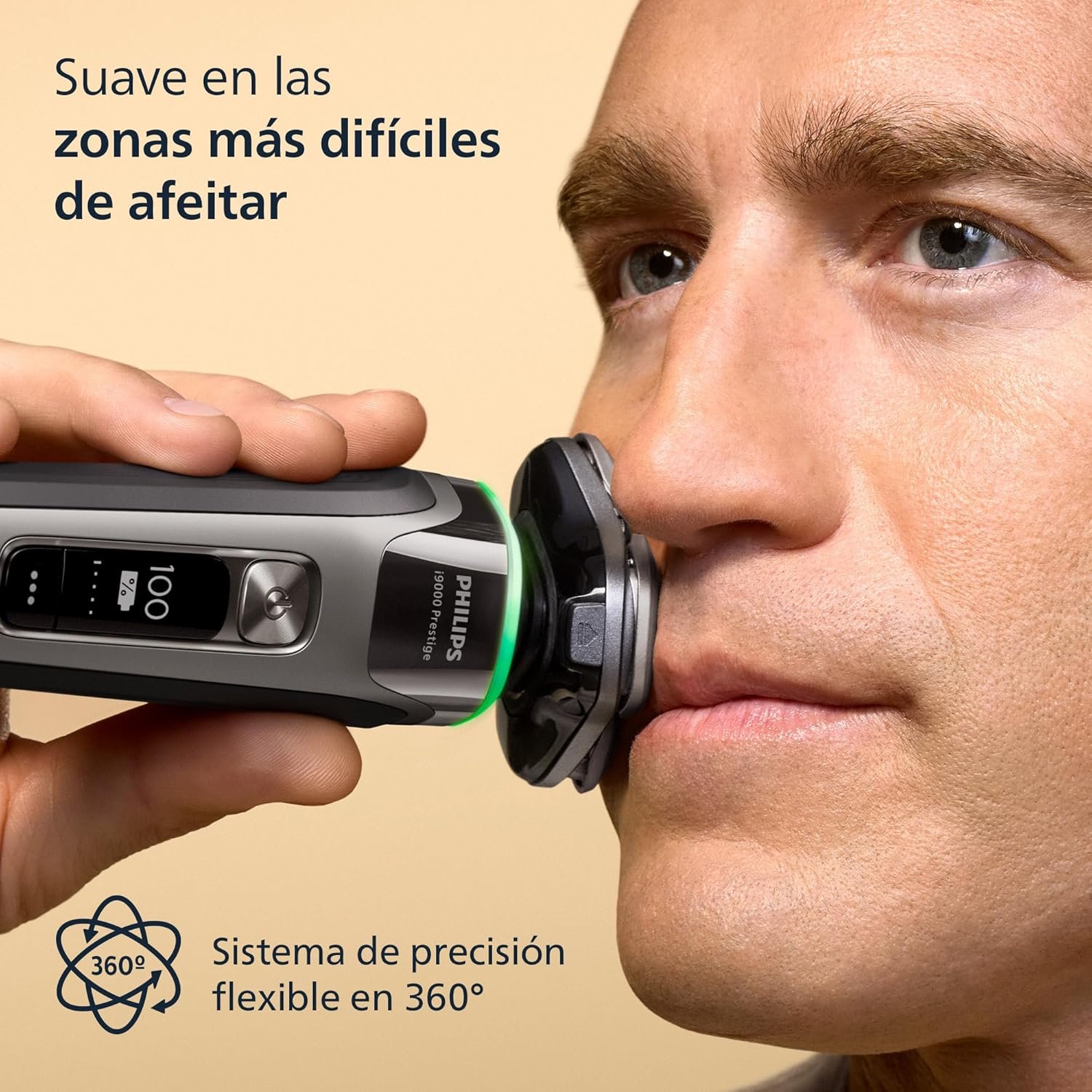Fully flexible and compact heads with skin tightening patterns dynamically adapt to every curve of your face to deliver 20% more precision even in difficult shaving areas². The dual precision blades rotate 360 degrees to cut hair in any direction with 7 million movements per minute to ensure an efficient shave on a 1, 3, or 7 day beard. AI-powered SkinIQ technology delivers smart skin comfort customized for you.