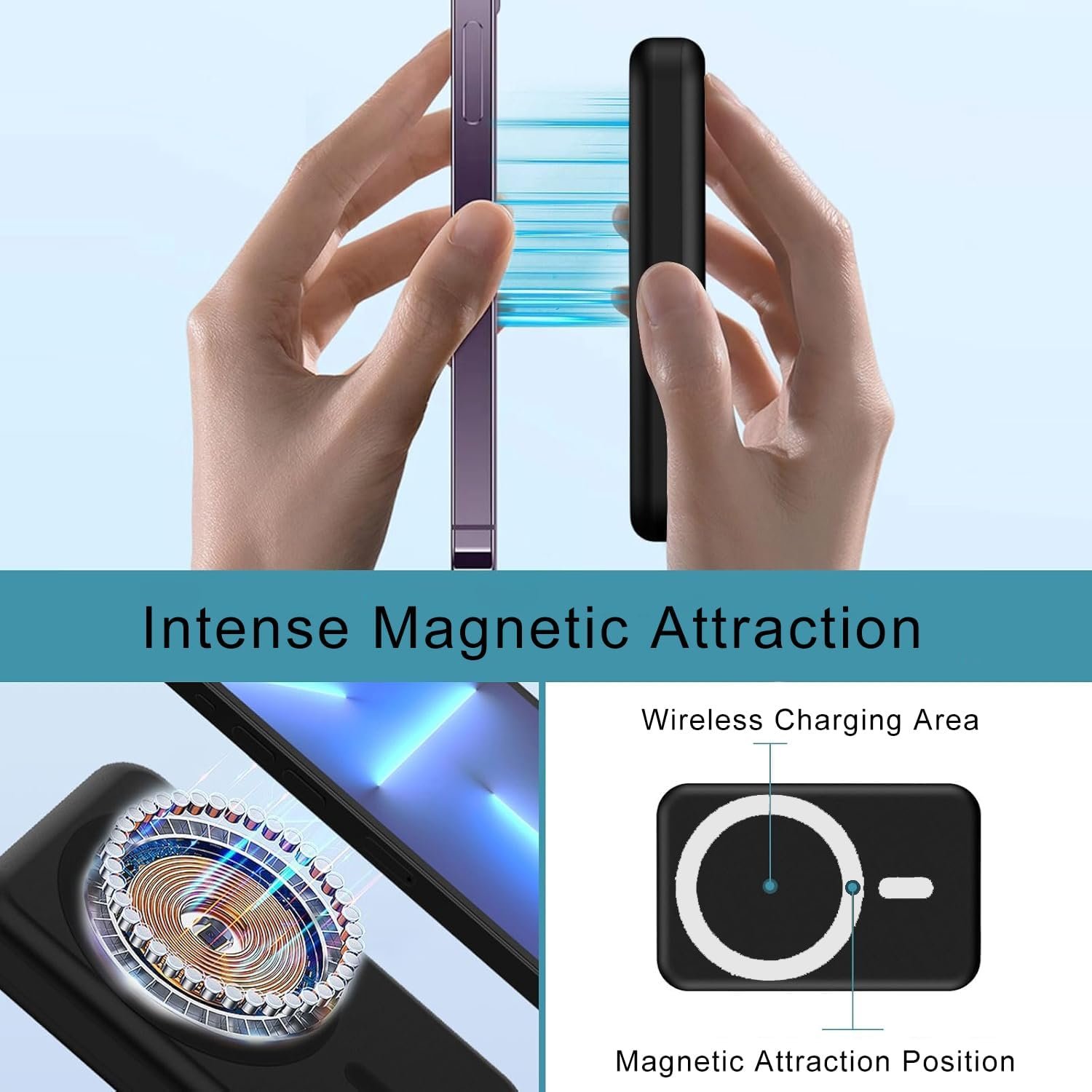 【Automatic Alignment, Induction Charging】With its intelligent sensor technology, the power induction charger starts charging automatically as soon as it approaches the smartphone. It offers a convenient charging experience without manual intervention or button pressing.