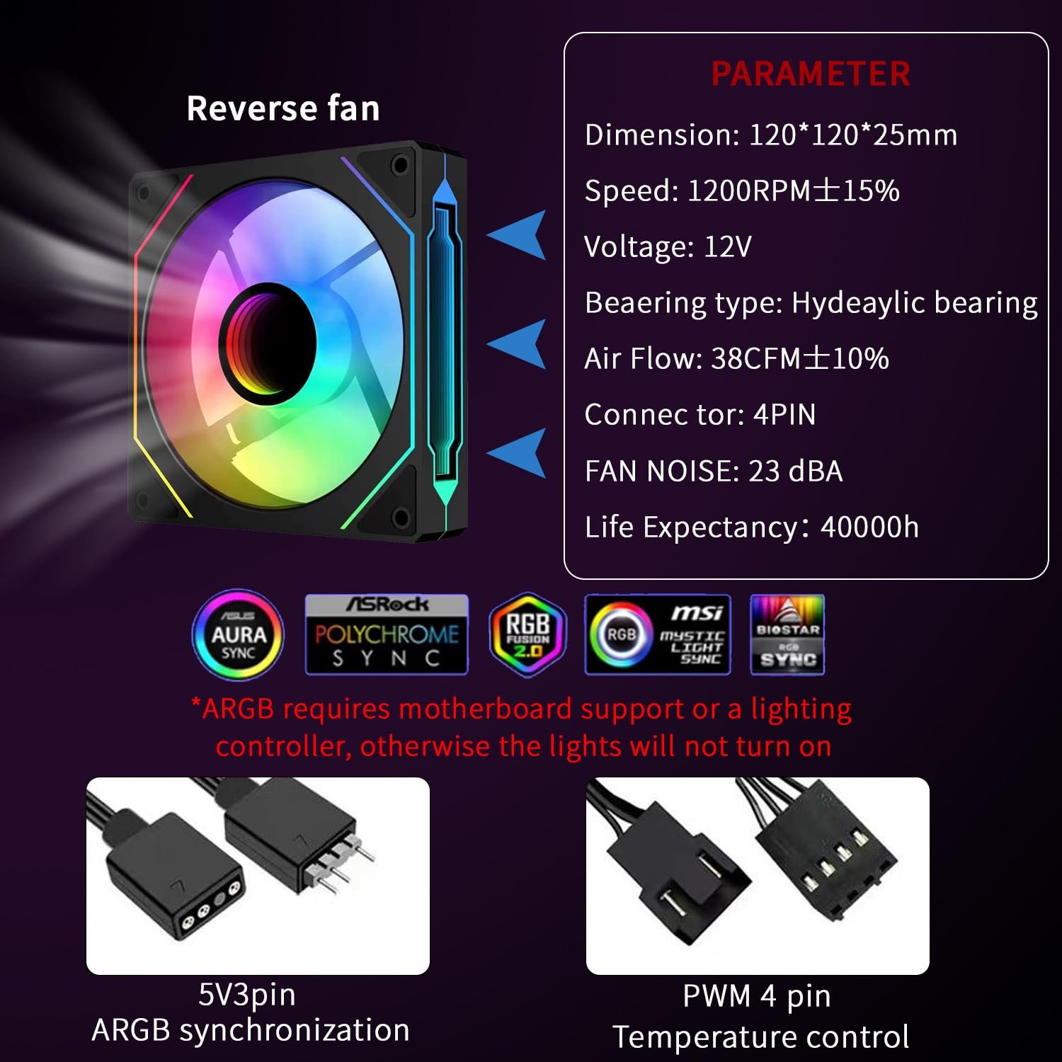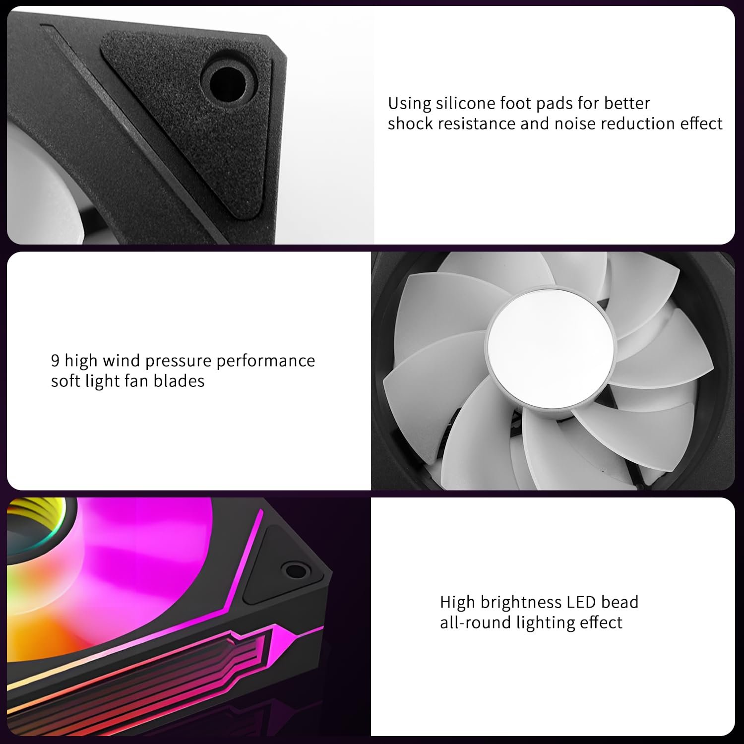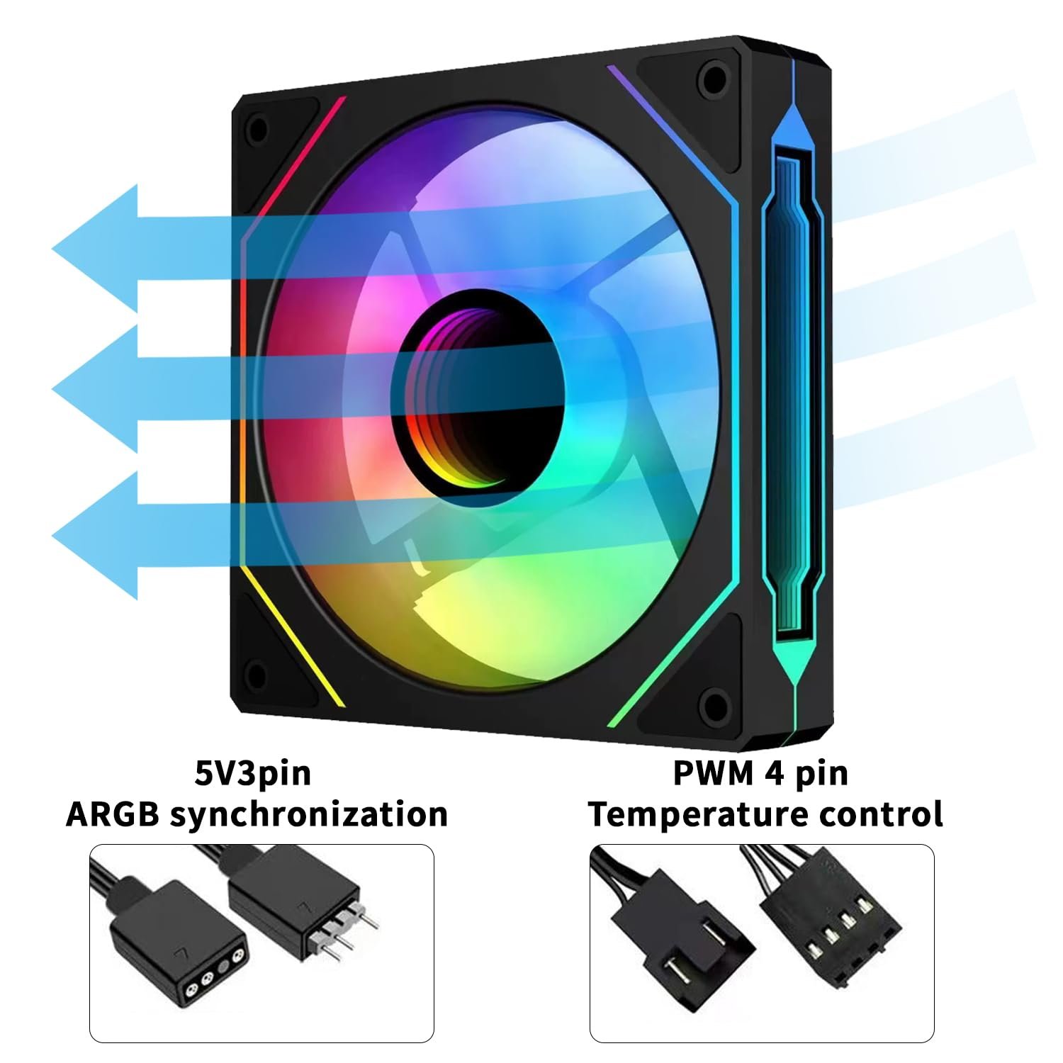 Adjustable lighting effect: ARGB lighting on the blades and frame creates a stunning lighting effect for the PC chassis.