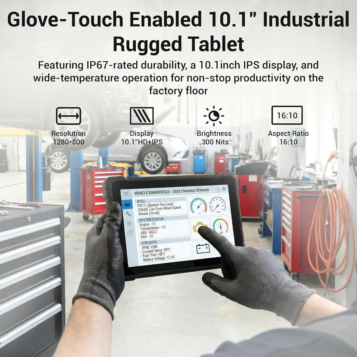 Rugged and Waterproof Tablet PC-This rugged tablet features an IP67 waterproof reinforced construction that meets MIL-STD810G standards. It has a rigid frame that provides maximum durability and protection. No more worrying about adverse conditions such as vibration, impact, drops or liquids. In addition, this outdoor tablet features an 800*1200 IPS display with visibility under sunlight, allowing you to read content even in strong sunlight. It is ideal for field workers, architects, engineers, electricians and maintenance personnel.