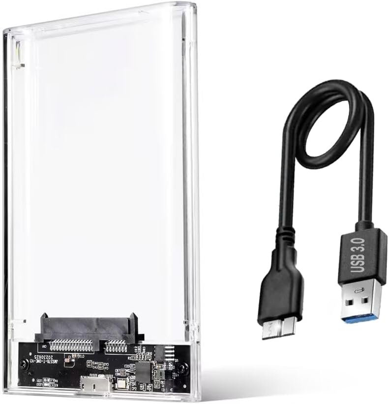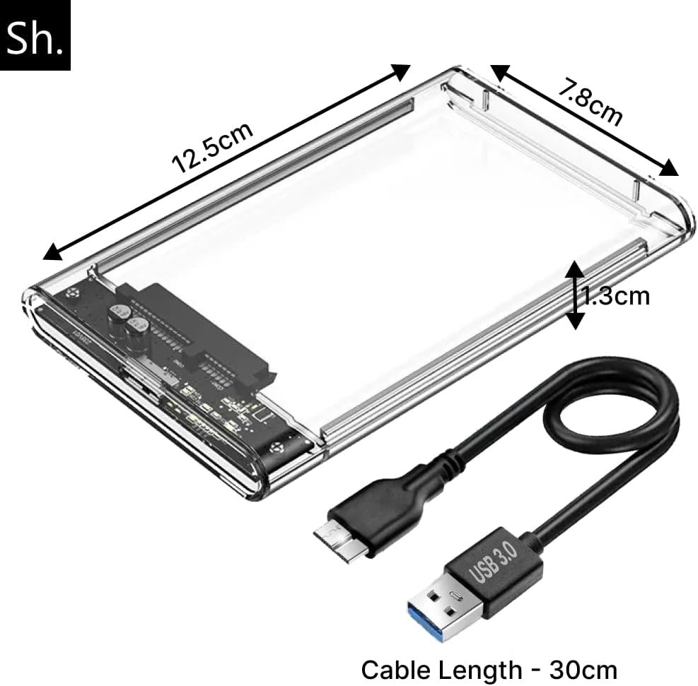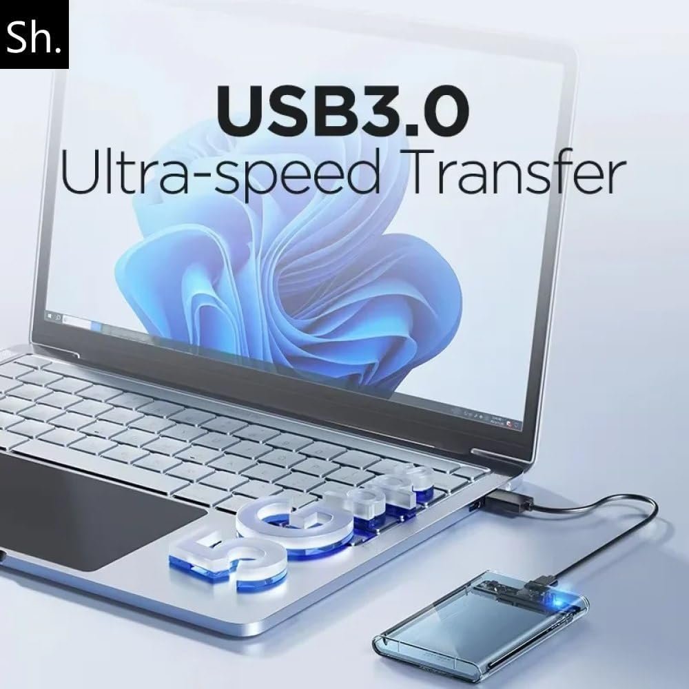 Give your hard drive or SSD maximum protection and ultra-fast transfer speeds with the Sh. 2.5 inch external case This versatile USB 3.0 to SATA enclosure allows you to connect any 2.5″ (7mm or 9.5mm) hard drive or SSD to your laptop, desktop, game console or router with ease, ensuring fast and stable performance. Next Generation Speed With USB 3.0 and UASP (USB Attached SCSI Protocol), this enclosure offers transfer speeds of up to 5Gbps. UASP technology boosts read/write performance by up to 70%, making file transfers, backups and large media copies incredibly fast, perfect for gamers, photographers, designers and anyone who values their time. Tool-free installation Tool-free design allows you to install your drive in just seconds, no screwdriver needed. Simply open the case, insert your drive, plug in the USB 3.0 cable and start working. Plug & Play support means no drivers are required. Universal Compatibility Compatible with all 2.5″ SATA hard drives and SSD up to 4TB, this enclosure works with Windows, Linux and Mac OS. It is compatible with the most popular drive brands and can be used with laptops, desktops, PS4/Xbox consoles, or even routers to create your own home cloud storage. Protection and portability Made from durable ABS plastic with an internal shock-absorbing pad, the housing protects your unit from shocks, vibrations and scratches. A built-in LED indicator shows the working status. With its compact size (125×78×13mm) and lightweight design (60g), you can easily carry it in your bag, and the included 0.3m USB 3.0 cable offers convenient connectivity. Package includes:
