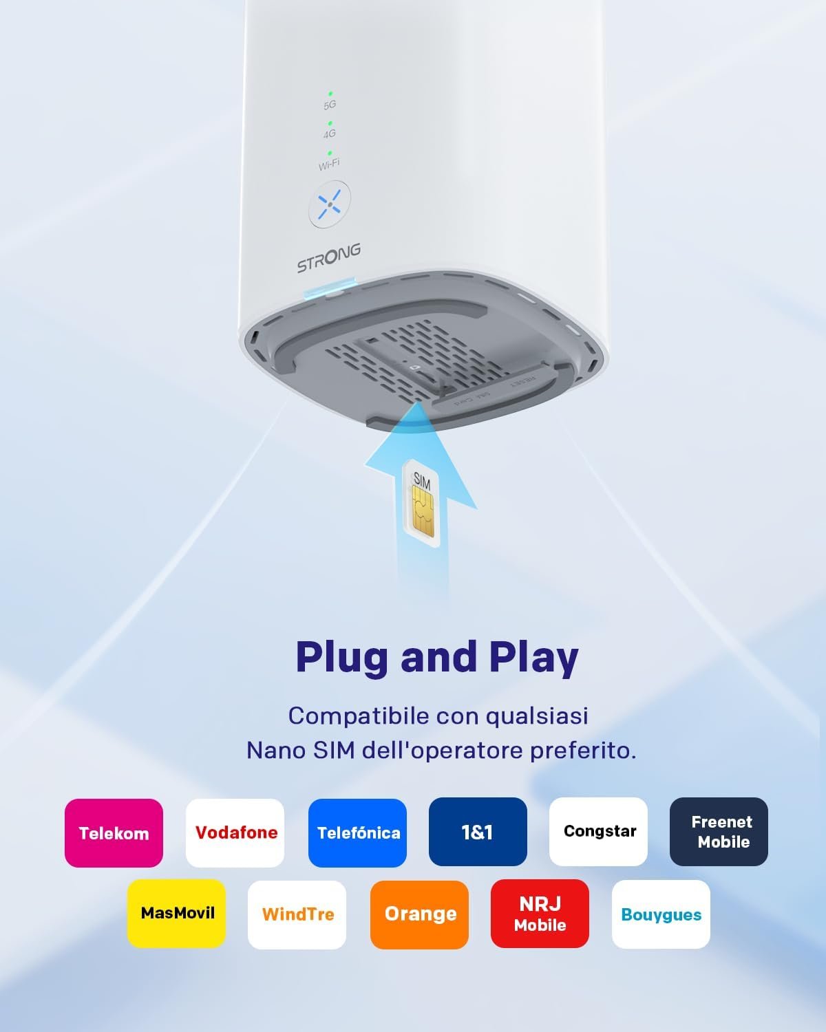 Powerful AX3000 WiFi 6 and 5G SIM Router: Enjoy an ultra-fast connection with our 5G SIM router, which combines advanced WiFi 6 technology to deliver maximum dual-band speeds, ideal for 4K streaming, online gaming and seamless teleworking.