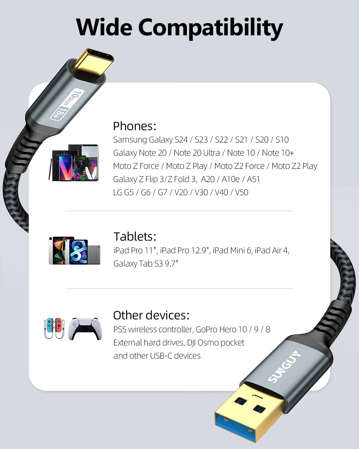 SUNGUY – USB C 3.1 Gen 2 to USB A Cable, Android Auto USB C for Car