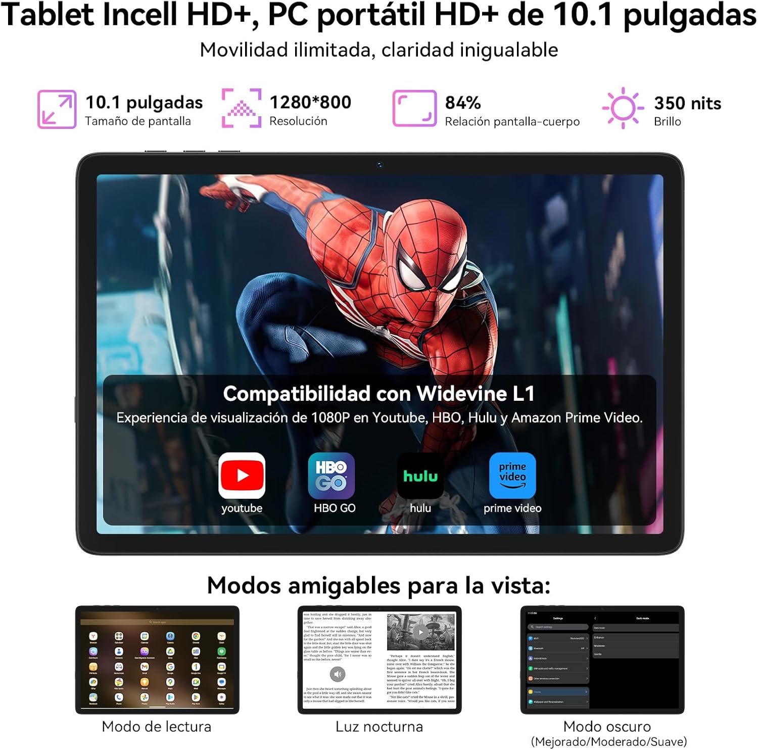 Widevine L1 HD + Immersive Stereo Sound: Create a Mobile Private Cinema. The TABWEE T20 10-inch tablet is Widevine L1 certified, ensuring you enjoy true Full HD 1080p content from major platforms like YouTube, Disney+ and Amazon Prime Video. With its Smart-K dual speakers, it delivers high-quality stereo sound and deep bass for an immersive visual experience. The IPS display offers lifelike colors and an anti-glare coating, ensuring comfortable viewing, whether you’re watching a night show on the couch, watching videos while cooking or enjoying a family movie.