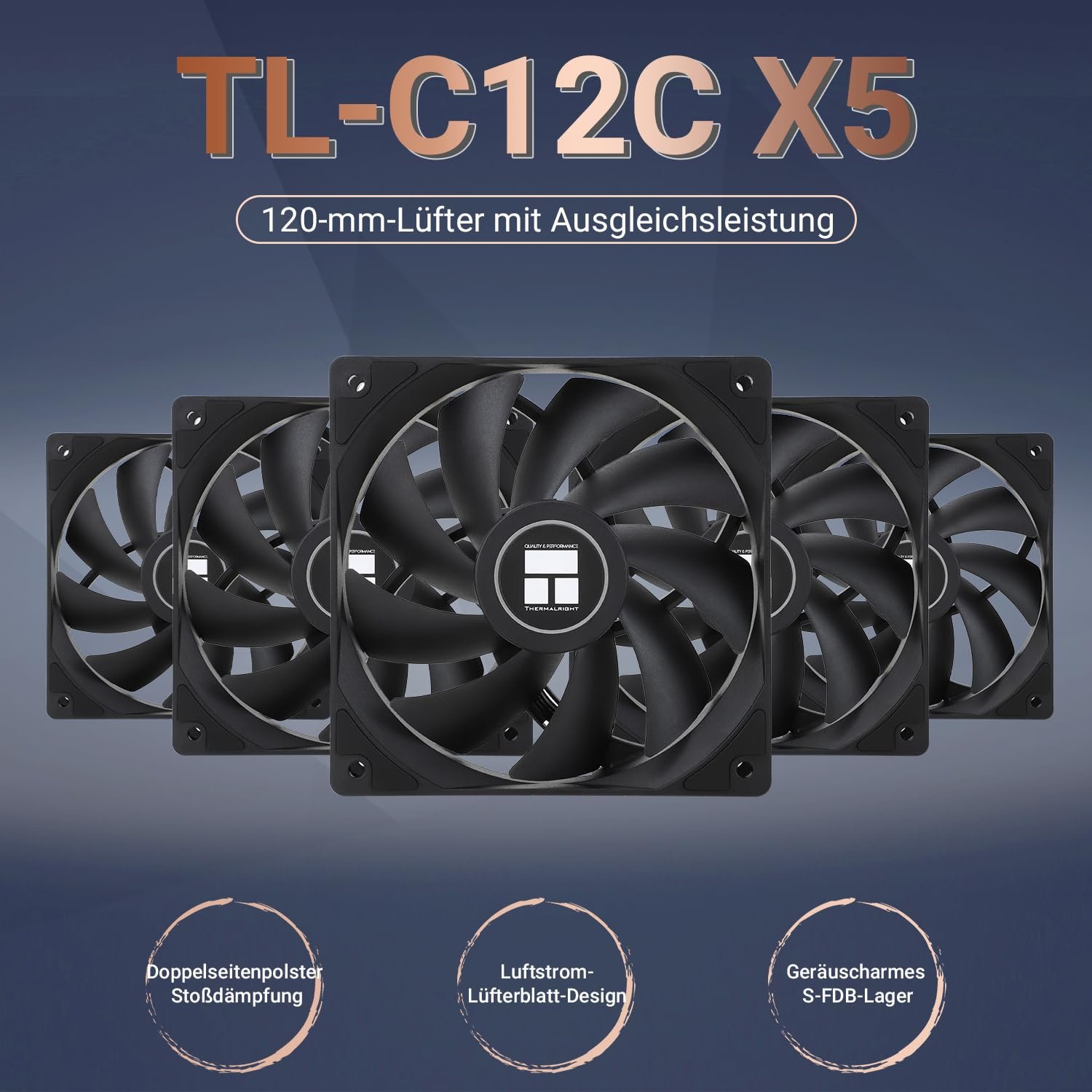 Quiet Fan Size: Model: TL-C12C, Size: 120 x 120 x 25mm, Speed: 1550 RPM, Noise 25.6 dBA. Connection: 4 pin pwm, current: 0.20A, air pressure: 1.52mm H2O, air flow: 66.17 CFM, increased airflow for better cooling performance.