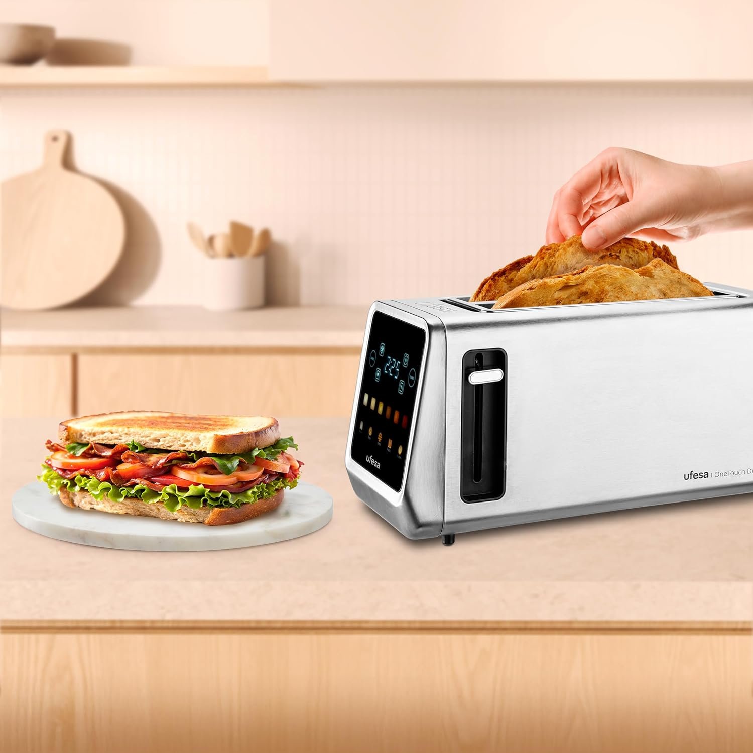 Descubre el nuevo Ufesa One Touch Duo Plus, el tostador digital con pantalla LED, 6 niveles de tostado y funciones avanzadas que se adaptan a todos los gustos y estilos de desayuno. Gracias a sus ranuras extra anchas y modos personalizables, conseguirás un tostado perfecto en todo momento.