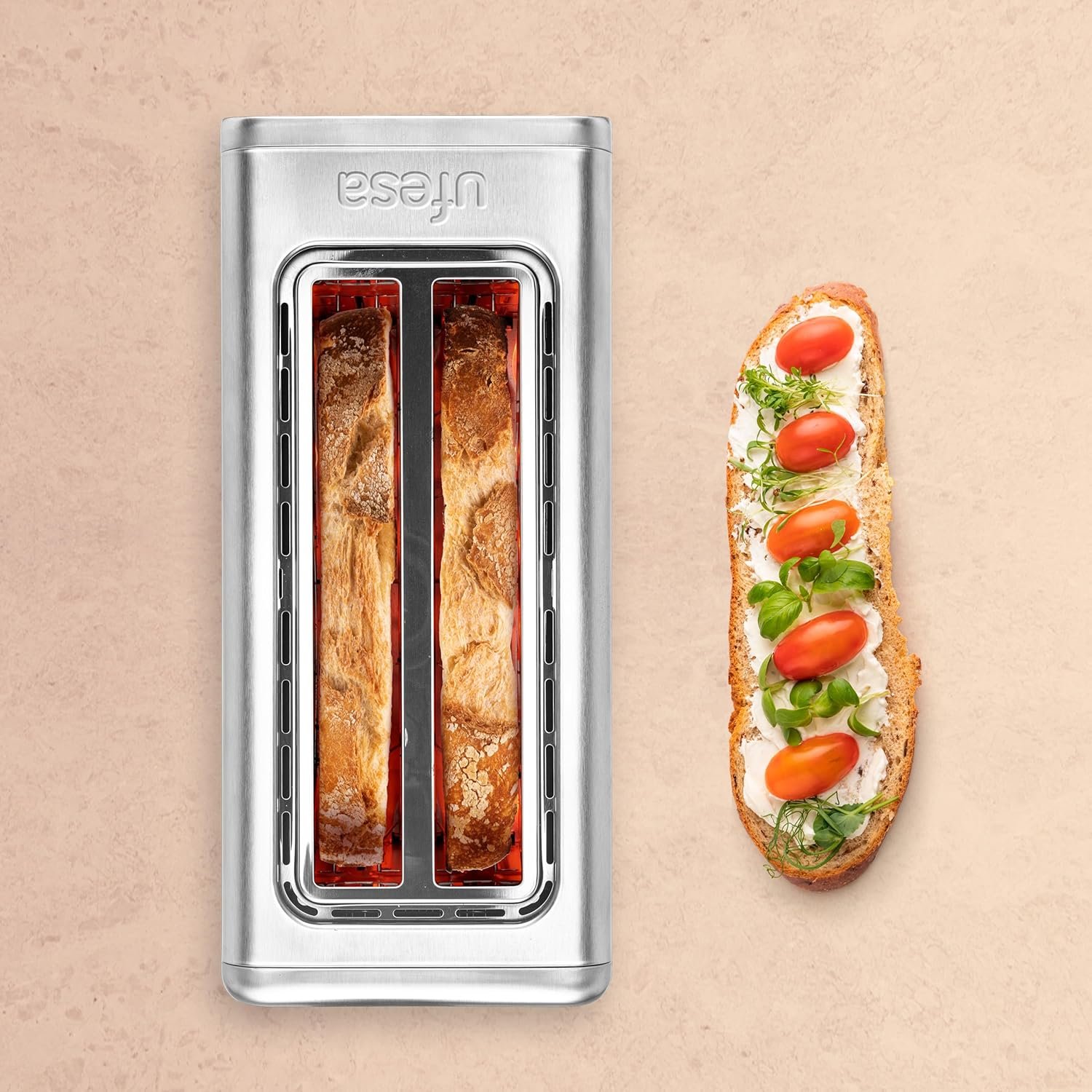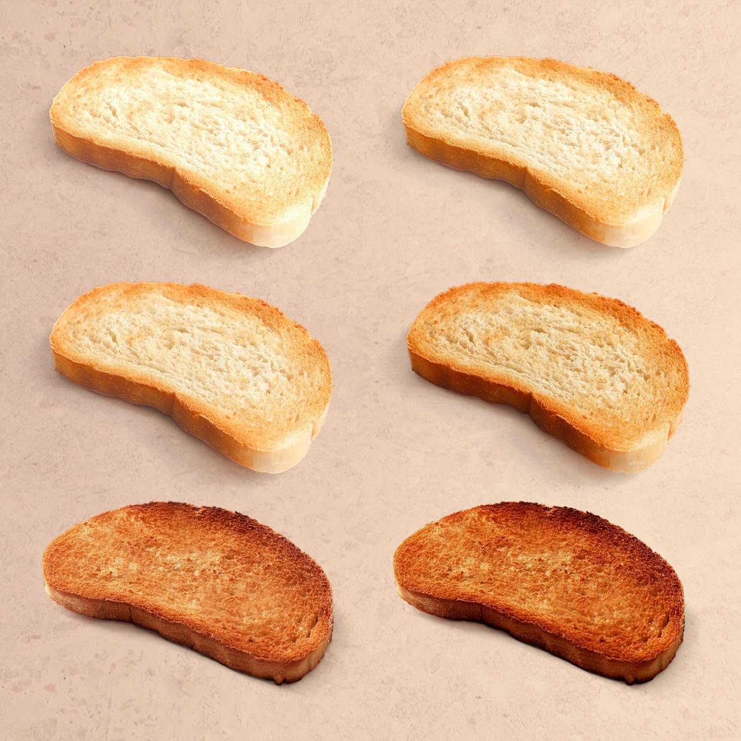 VERSATILE AND EXTRA POWERFUL. Stainless steel toaster with 1400W power, ideal for fast and even toasting. Thanks to its 6 levels of toasting, you can customize the result according to your preference. Includes a countdown timer with LED display for accuracy.