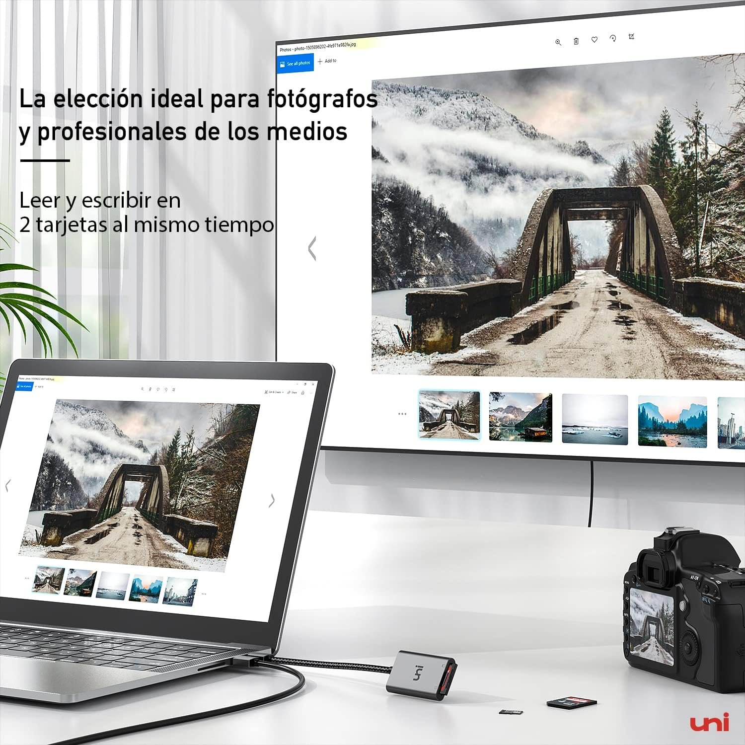 [Simultaneous Read and Write] uni Micro SD to USB Adapter can read and write 2 cards at the same time, save the constant reinsert. Ideal for photographers and media professionals. Supports a wide range of memory cards from cameras such as Canon Nikon LUMIX Casio and many other DSLR cameras.