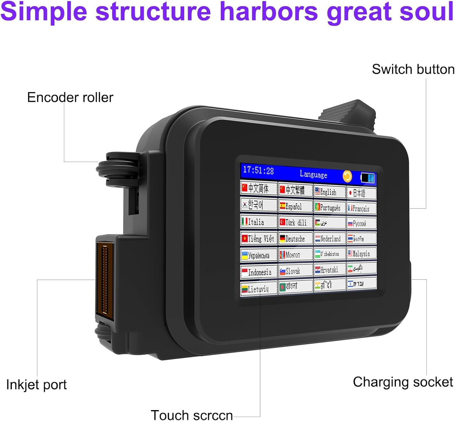 Printing System Features Original smart system and advanced smart chip allow you to enter and edit most content with our printer, easy to use like operating phone. (Support 28 languages, can import images from U disk to print)