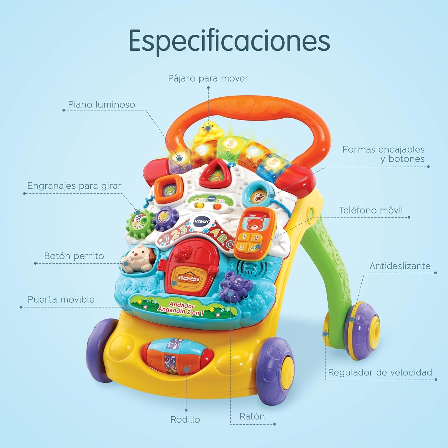 Sé el primero en valorar “VTech -Baby 2-in-1 Walker Walker with Music and Lights, Folding Legs, Removable Panel, Speed Controller, Multi-Colour, ESP Version, Standard Packaging”