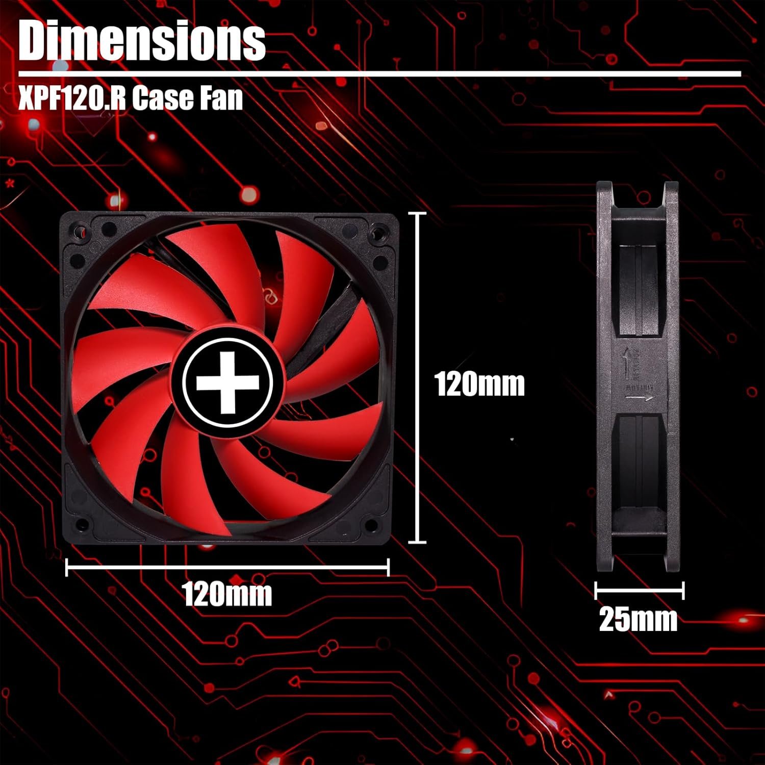 Fan Dimensions 120mm long, 120mm wide, 25mm high