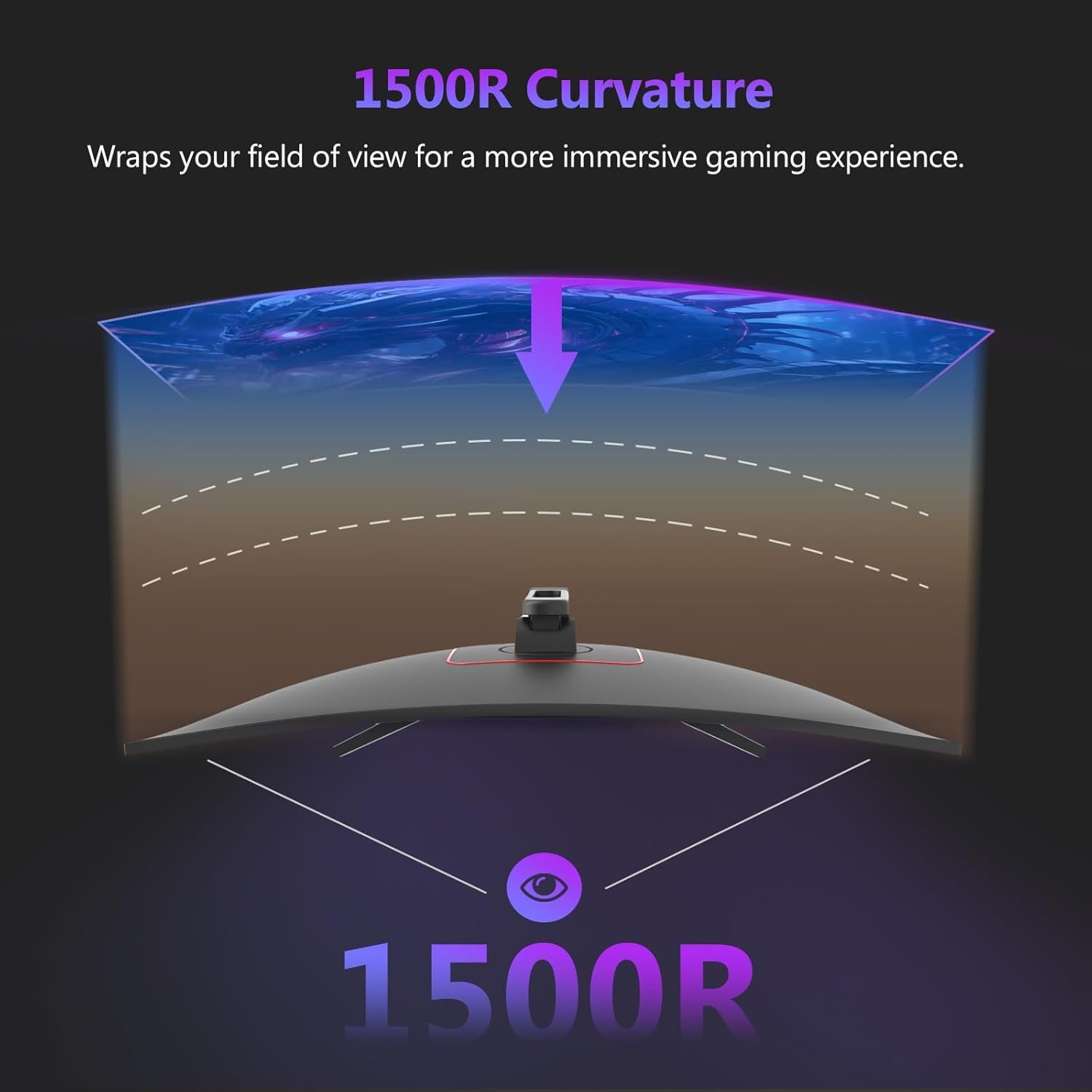 FHD 1080P + HDR Resolution: Full HD combination with HDR support ensures cinematic quality: sharp contrasts, deep blacks and vibrant details. Perfect for professional gaming, graphic design or binge-watching with total immersion. The curved screen provides a more immersive experience, wrapping the action around your field of view and reducing eyestrain during long gaming sessions.